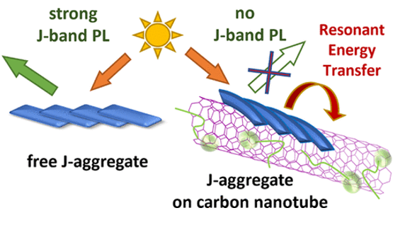 We report on the design and structure principles of 5,5′-6,6′-tetrachloro-1,1′-dioctyl-3,3′-bis-(3-carboxypropyl)-benzimidacarbocyanine (Dye 1). Such metal-free amphiphilic cyanine dyes have many applications in dye-sensitized solar cells. AFM surface topographic investigation of amphiphilic molecules of Dye 1 adsorbed on TiO2 anode reveals the ability of spontaneous self-organization into highly ordered aggregates of fiber-like structure. These aggregates are known to exhibit outstanding optical properties of J-aggregates, namely, efficient exciton coupling and fast exciton energy migration