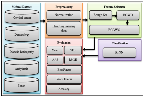 The issues of multitude of noisy, irrelevant, misleading features, and the capability to tackle inaccurate and inconsistent data in real world topics are the justification to turn into one of the most significant needs for feature selection. This paper proposes an intelligent hybrid approach using Rough Set Theory (RST), Chaos Theory and Binary Grey Wolf Optimization Algorithm (CBGWO) for feature selection problems. Ten different chaotic maps are used to estimate and tune GWO parameters. Experiments are applied on complex medical datasets with various uncertainty features and missing values