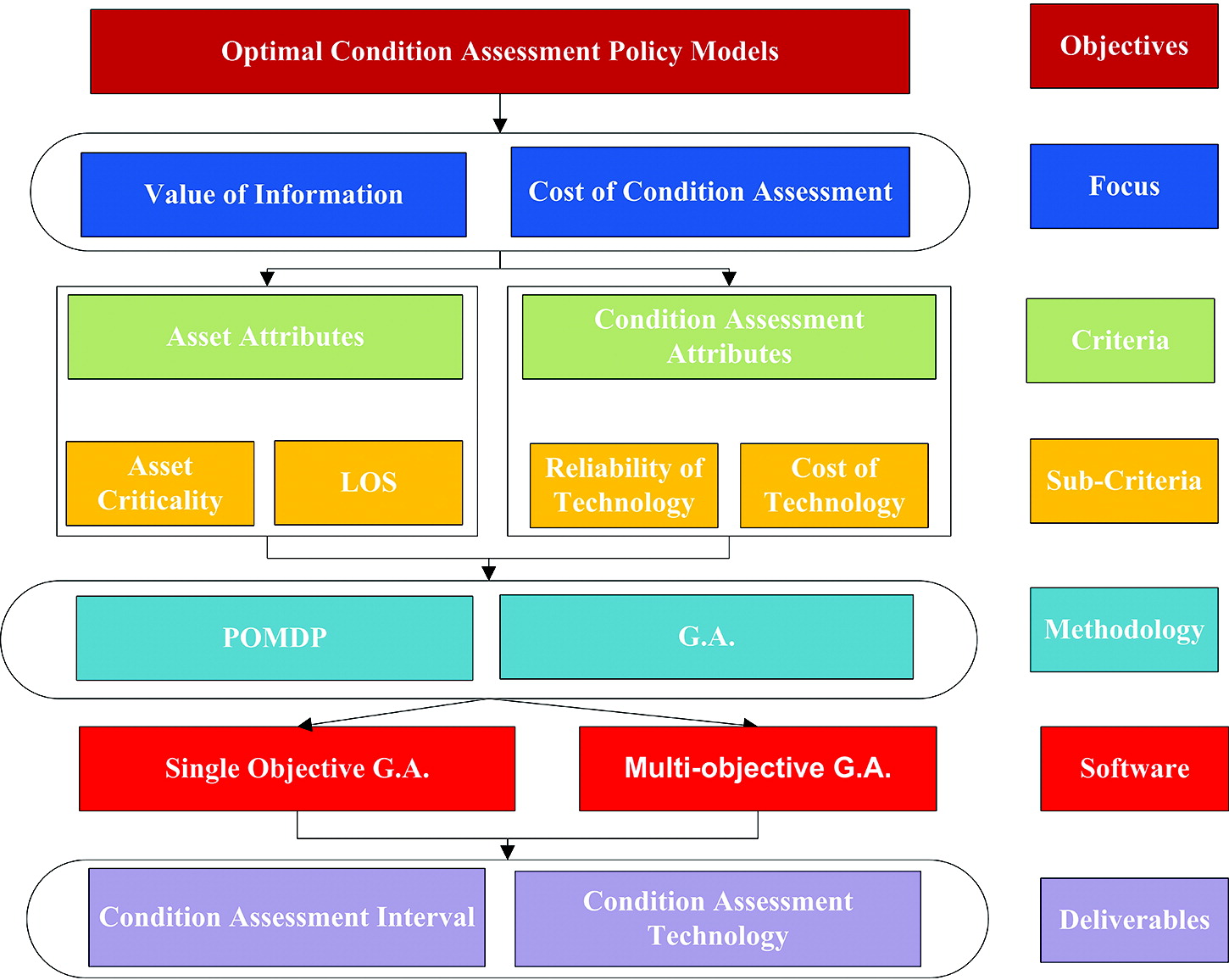 This paper presents a framework for optimizing condition assessment policies by balancing the revealed value of information with the cost of obtaining such information. The computational platform is based on augmenting the asset condition state with an expected level of accuracy. Inaccuracies due to condition assessment reliability are evaluated using the partially observable Markov decision process. The single objective genetic algorithm is used to select the most cost-effective assets to assess considering information inaccuracy under a fixed budget. The model is extended using