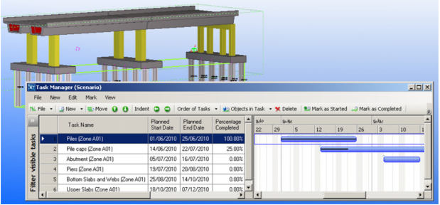 Building Information Modeling (BIM) has widely become an effective tool in engineering and construction fields. It could be used in: generating shop drawings; detecting clashes; estimating quantities; and controlling documents. Applying BIM technology on bridges is named Bridge Information Modeling (BrIM). Bridge Information Modeling (BrIM) is an intelligent representation of bridges since it contains all information needed about bridges through their whole lifecycle. This paper presents the use of Building Information Modeling in cost and time management of infrastructure bridges. BIM-based