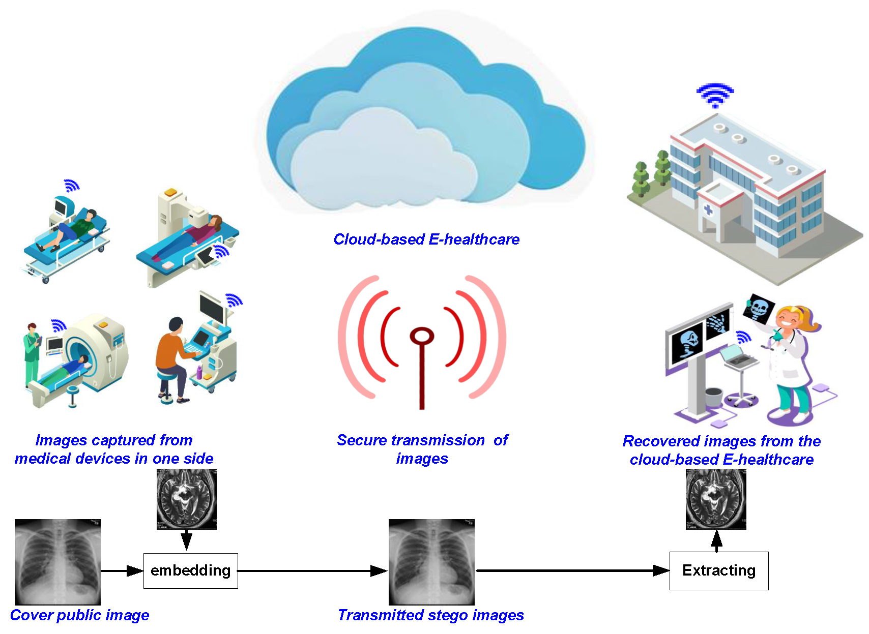 A robust quasi-quantum walks-based steganography protocol for secure transmission of images on cloud-based E-healthcare platforms