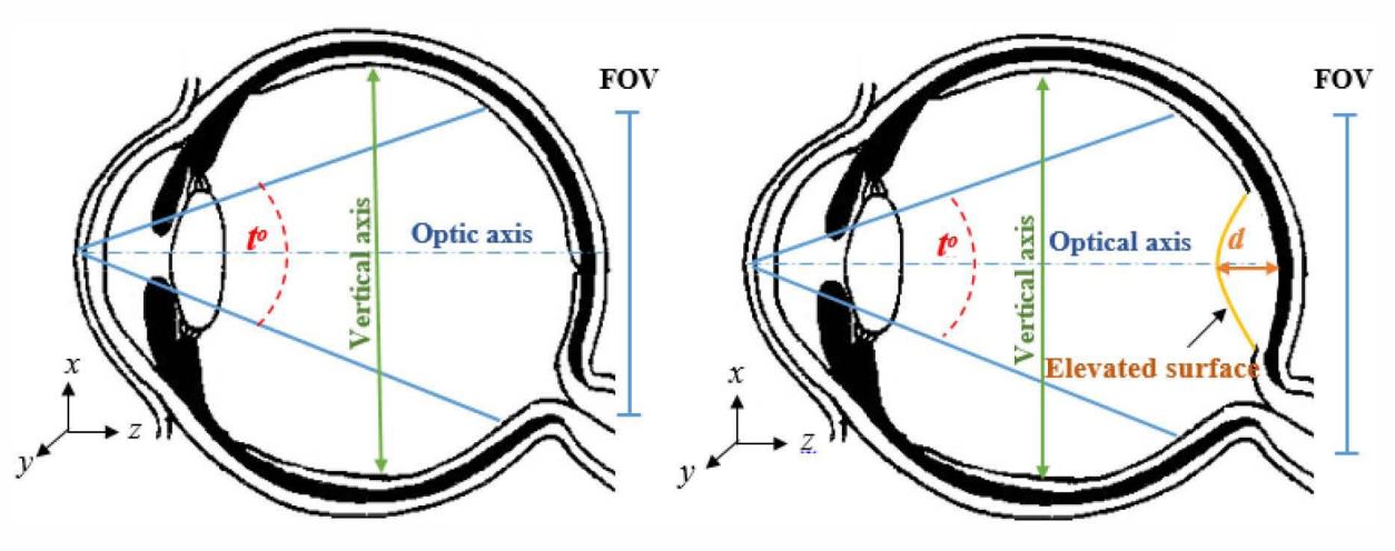 Based registration of retinal images proved to be very successful especially for minimally overlapping images. The most commonly used transformation method uses a quadratic model to represent the geometry of the retinal surface. Although this model has been used for more than one decade, there is no literature that studies the model errors for abnormal eye geometries. In this work, we present a study of the registration errors of the quadratic model in case of diseased eyes. The study includes two basic models of the retinal surface for eyes suffering from: myopia; and retinal diseases (e.g
