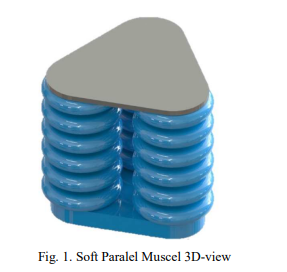 Recently, soft robotics represents a new era of advanced robotics systems. Based on the flexible nature of soft robots, they are more adequate to have safe interaction with humans and handle complex or delicate objects. Due to the nature of soft robotics, there is a crucial need to propose new designs, fabrication, and control systems suitable for the flexibility nature. In this research project, a novel three parallel soft muscle actuator is proposed. The proposed design and analytical models for predicting actuation behavior are based on a set of design parameters. First, the actuator