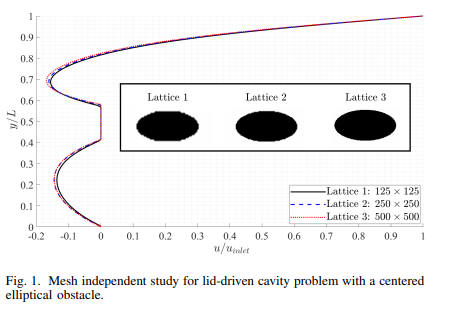 The aim of the present work is to predict the flow field around an elliptic obstacle at different orientations inside a square Lid-Driven Cavity (LDC). The Lattice Boltzmann Method (LBM) is used to simulate the flow at a Reynolds number, Re, of 100, using the two-dimensional nine-velocity, (D2Q9) lattice configuration and the BGK collision operator. The in-house code is validated using data from the literature for the case of LDC with a central circular cylinder. Different ellipse orientations are tested (0°, 30°, 45°, 90°, 120°, 145°, and 150°) to check the effect of orientation on the vortex